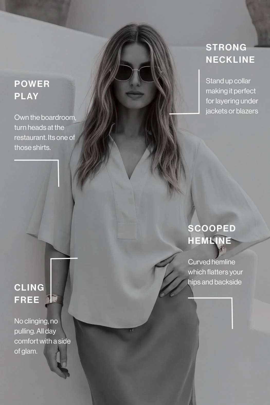 Soft, feminine and effortlessly polished, the Pale Pink Glow Fluted Blogger Shirt brings an instant lift to everyday dressing. Crafted from beautifully fluid, silky fabric, this style drapes with ease through the body while catching the light with a subtle glow. The relaxed silhouette, fluted shape and hi-lo hem make it a go-to piece when you want comfort without sacrificing style.