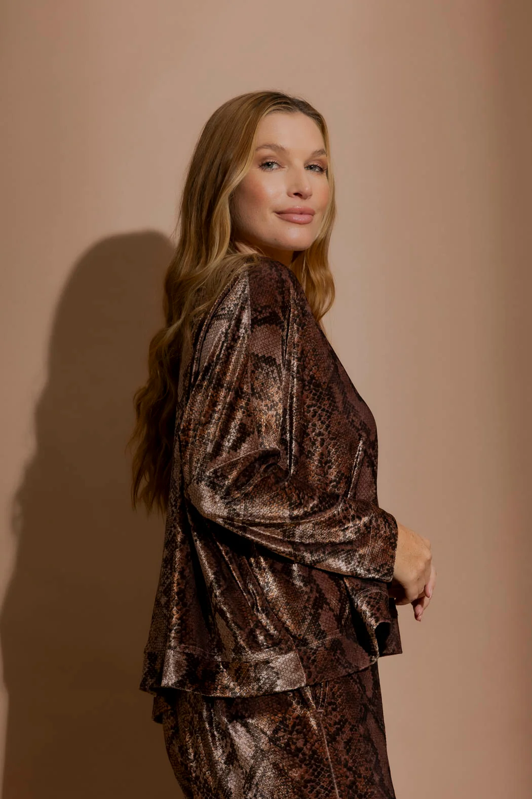 The Snake Velvet Jumper is where cosy meets couture. Designed in luxe stretch velvet, this piece takes loungewear to the next level with a rich, textured finish that feels as good as it looks. The V-neckline keeps it effortlessly chic, while the drop shoulder adds that perfectly relaxed vibe. Finished with a semi-cropped length, it's made to pair with high-waisted everything. Whether you're dressing it up or keeping it laid-back, this is loungewear with a serious upgrade.